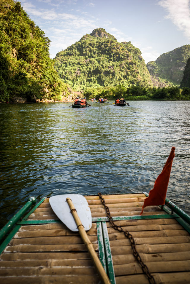Tam Cốc là quần thể hang động được cấu thành bởi 3 hang ( hang cả - hang hai – hang ba ) liên kết với nhau bởi sông Ngô Đồng chảy xuyên suốt qua núi. Mọi người muốn tham quan Tam Cốc thì xuống thuyền ở Trung Tâm rồi lênh đênh đênh trên sông Ngô Đồng ngắm cảnh đồng lúa bên bờ sắc xanh sắc vàng và sắc bạc của nước.